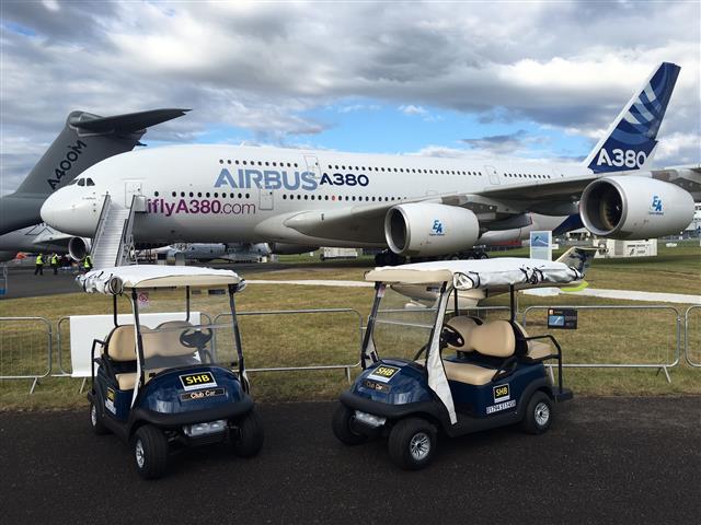 Four seat Golf Buggy with two forward facing seats and two rear facing seats for hire.