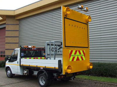 Sign board 2.3m x 3m DG3 yellow reflective 4 x 300mm halogen warning lights